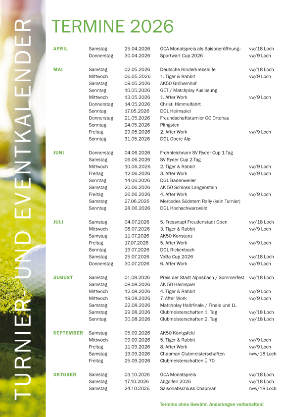 Wir spielen ohne Startzeiten - Bitte informiert euch über die Platzbelegung über unseren Kalender. Aktueller Platzstatus (Kalender) hier